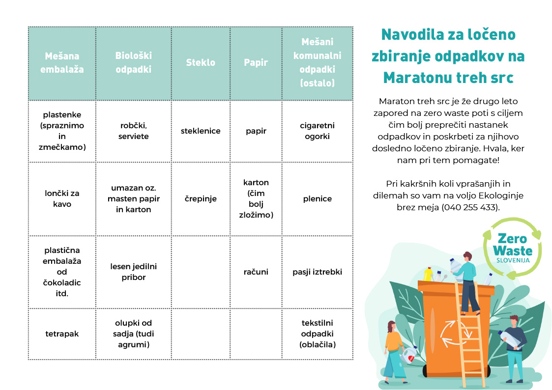 Maraton treh src je že drugo leto zapored na zero waste poti s ciljem čim bolj preprečiti nastanek odpadkov in poskrbeti za njihovo dosledno ločeno zbiranje.