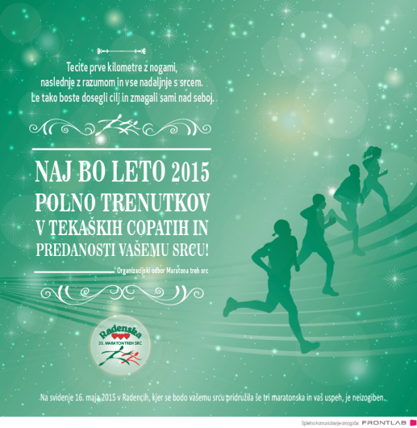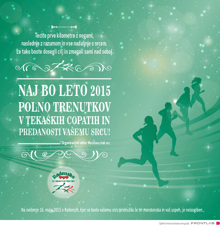 Na svidenje 16. maja 2015 v Radencih, kjer se bodo vašemu srcu pridružila še tri maratonska in vaš uspeh, je neizogiben.