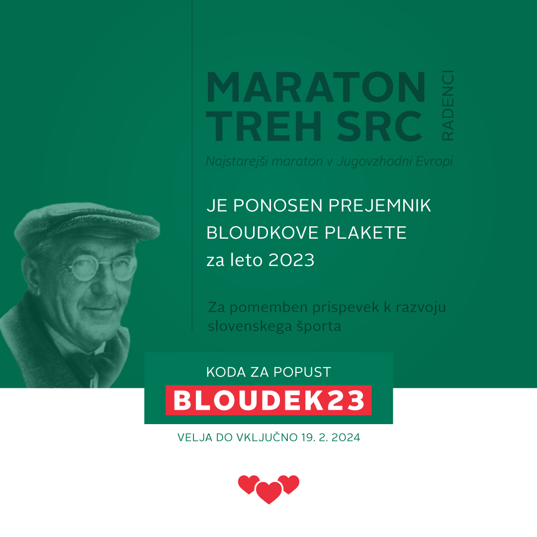 Prijavite se na 42. MTS in v polje 'koda za popust' vpišite BLOUDEK23 ter si zagotovite prijavnino po znižani ceni 35 €. Koda je veljavna do vključno ponedeljka, 19. 2. 2024, za prijavo posameznih tekačev na trase 42, 21, 10 in 5 km. Ne zamudite priložnosti in se pridružite najbolj srčnemu maratonu na svetu!