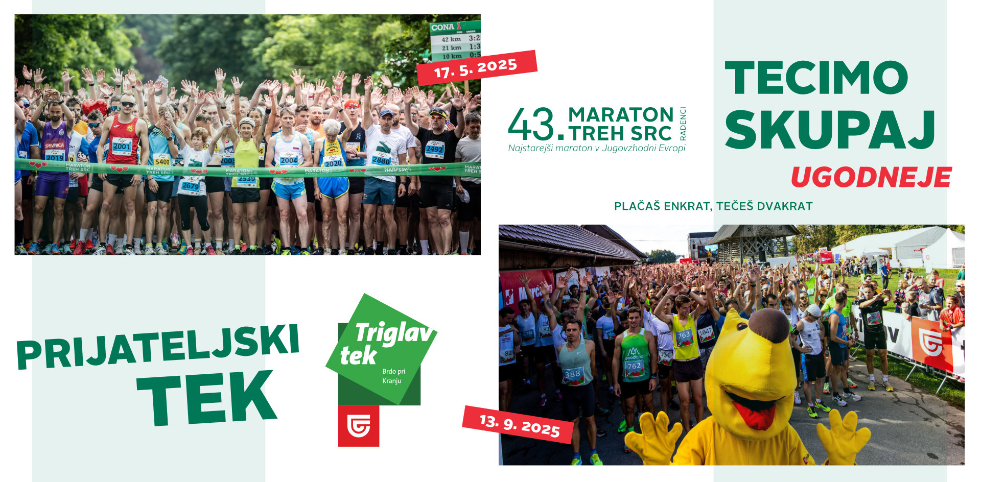 Maraton treh src in Triglav tek se povezujeta in vam ponujata ugodno skupno prijavo za le 65,00 EUR.
